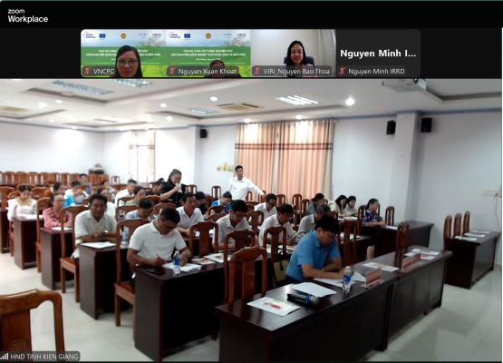 Within the framework of the program “Development of Eco-Fair women businesses (sustainable business) in green and circular agriculture sector in Vietnam” (Eco Fair 2), funded by the European Union, the Vietnam Rural Industries Research and Development Institute (VIRI), and the Vietnam Cleaner Production Centre Co. Ltd. (VNCPC), in collaboration with the Farmers’ Support Center – Vietnam Farmers’ Union and the Farmers’ Unions of Tuyen Quang, Kien Giang, and Binh Dinh provinces, organized information and knowledge- training and sharing sessions on green and sustainable agriculture in April 2025.
